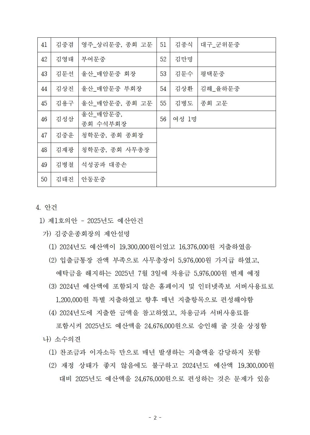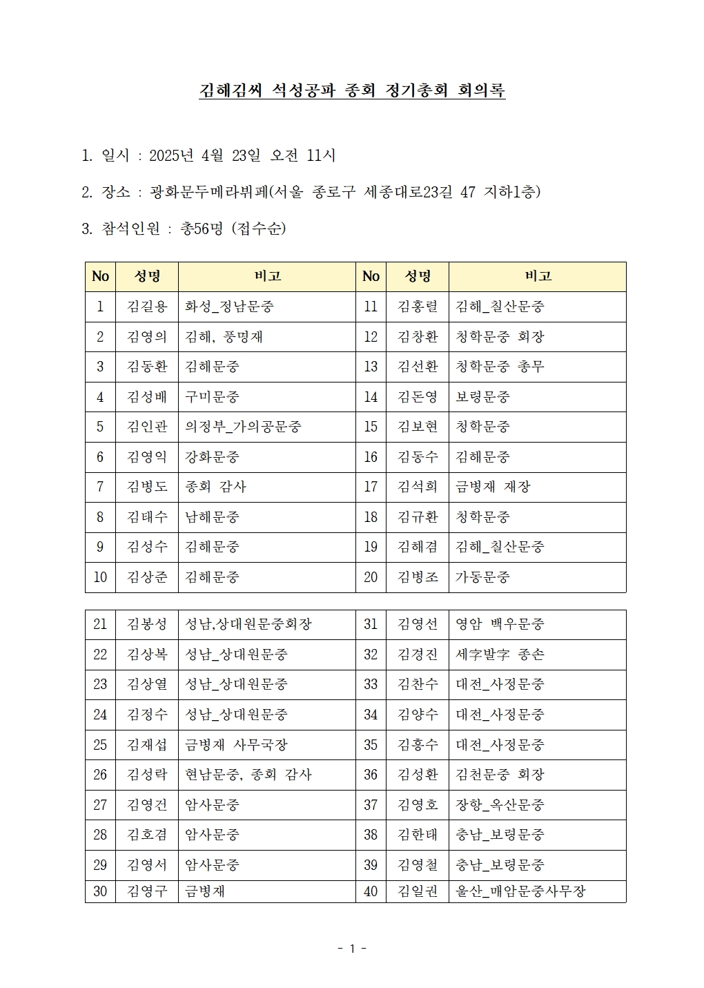 *종회장 이취임식은 정기총회에서 거행하는 것이 원칙이지만 금병재 시향제에서 거행하게된 관련근거를 아래 회의록에 첨부하였습니다.